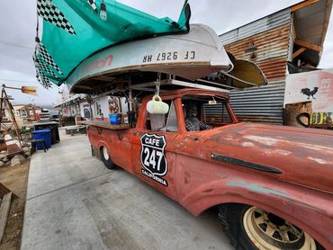The Greatest Hamburgers on Earth and a whole lot more. We got food, drinks and great music Saturdays and Sundays. Even Bob and Rat Fink hang out here.